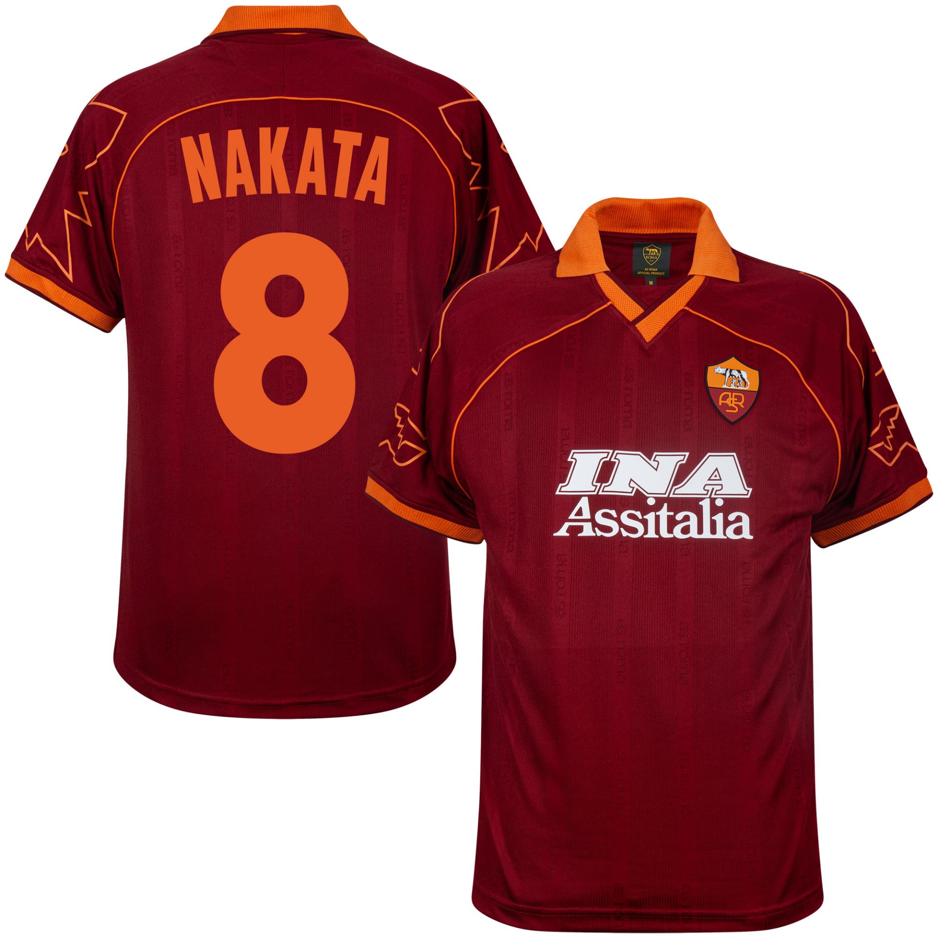 Maglia da calcio retrò dell'AS Roma 1999-2000 di COPA Football, della collezione ufficiale dell'AS Roma. Il retro presenta la stampa della leggenda dell'AS Roma Nakata (8). Questa maglia retrò dell'AS Roma si basa sulla maglia casalinga dell'AS Roma della stagione 1999/00. La maglia da calcio retrò dell'AS Roma ha maniche corte e presenta il tradizionale colore rosso scuro. Questa maglia da calcio è caratterizzata dalla lupa romana arancione su entrambe le maniche. Il colletto a polo e il piping sono arancioni. Il nome dell'allora sponsor, INA Assitalia, è stampato al centro del petto. Sul lato sinistro del petto è presente il logo della squadra di calcio di Roma con la famosa lupa romana. Questa maglia da calcio dell'AS Roma è stata indossata da giocatori come Montella, Totti, Delvecchio, Cafu, Aldair, Nakata e altri giocatori di punta. Materiale: 100% poliestere.