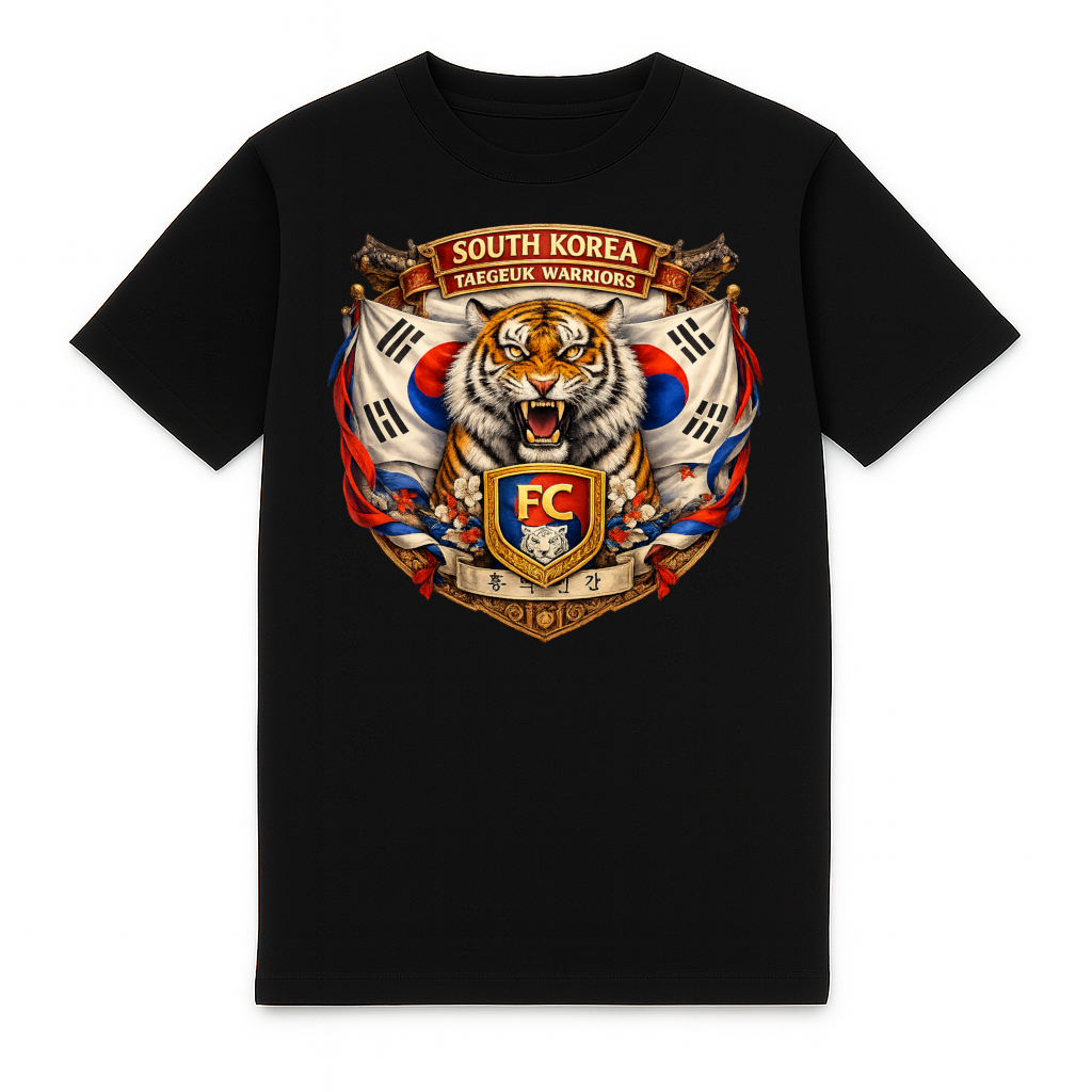 Elegante T-shirt heavy Corea del Sud per adulti di FC ELEVEN. Questa T-shirt heavy è realizzata in cotone biologico pesante. Il retro della T-shirt presenta una stampa di uno scudo con una stampa 3D di una tigre e bandiere della Corea del Sud sullo sfondo. La stampa è interamente realizzata nello stile dei colori nazionali del paese. Inoltre il logo include il testo Taegkeuk Warriors, creato appositamente per sostenere la nazionale della Corea del Sud. La T-shirt è inoltre dotata delle iniziali del marchio FC in nero sul petto sinistro. Si tratta di un logo in silicone. La T-shirt heavy è completamente nera ed è dotata di girocollo. La T-shirt è realizzata in cotone pesante e ha una vestibilità regolare. Materiale: 100% cotone biologico.