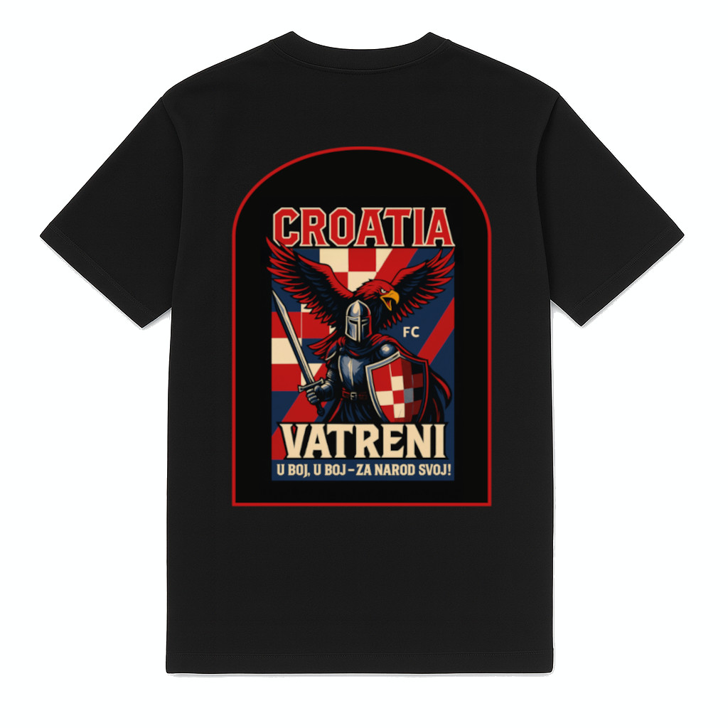 Fantastica maglietta da calcio della Croazia di FC ELEVEN per adulti. La T-shirt pesante è realizzata in cotone biologico spesso. Il dettaglio distintivo è la stampa grafica colorata della Croazia. In uno scudo tipicamente croato vediamo un guerriero con, naturalmente, l’aquila nazionale sullo sfondo della scacchiera rosso/bianca della bandiera del paese. La maglietta riporta non solo il nome del paese (CROATIA), ma anche il soprannome (Vatreni) e il motto! La T-shirt è inoltre decorata con le iniziali “FC” in nero sul petto sinistro, come logo in silicone. La maglietta pesante è interamente nera, con scollo rotondo, realizzata in cotone spesso e con vestibilità regolare. Materiale: 100% cotone biologico.