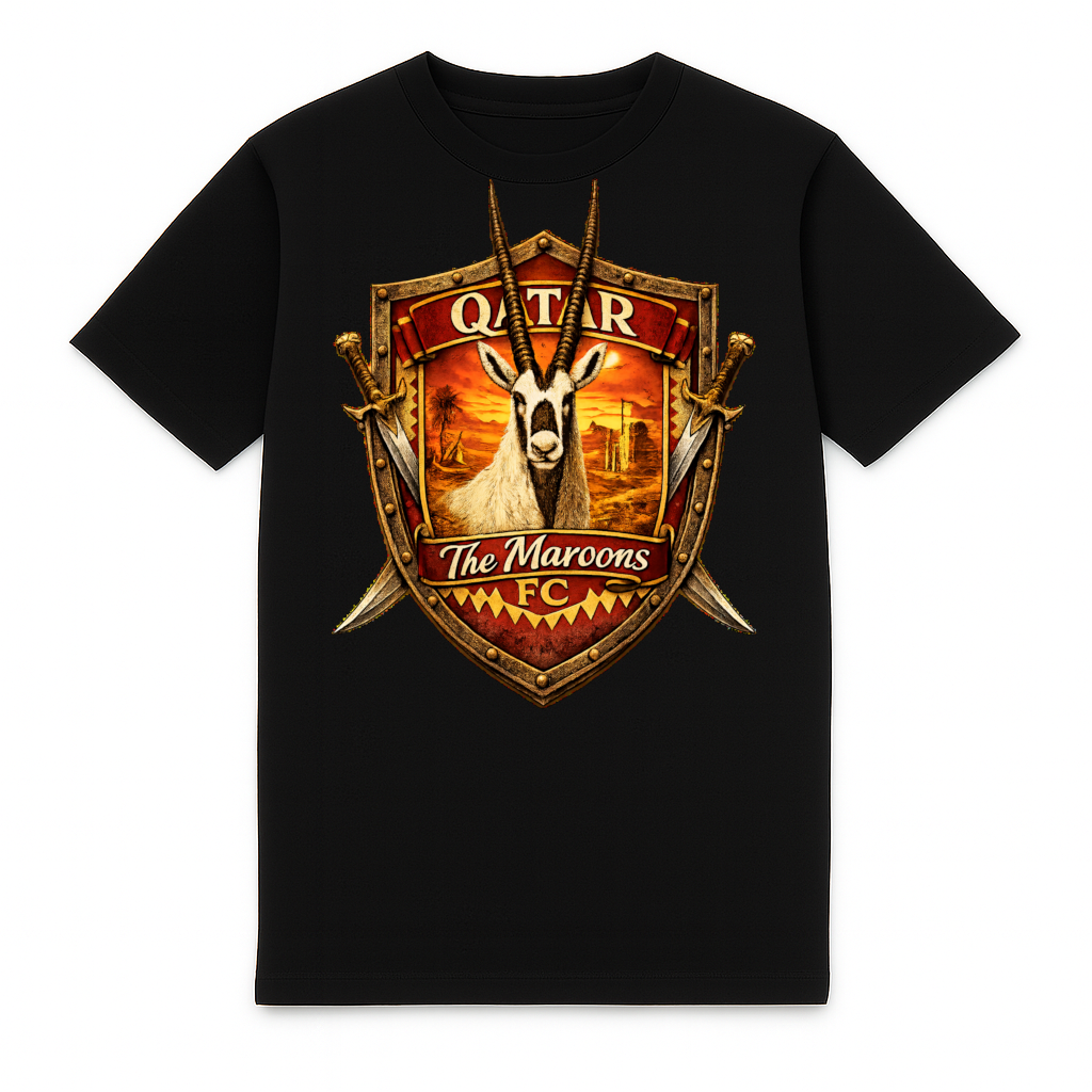 Elegante t-shirt pesante Qatar di FC ELEVEN per adulti. La t-shirt pesante è realizzata in cotone biologico pesante. Il retro della t-shirt presenta una stampa di uno scudo con una stampa 3D di un oryx arabo, il nome del paese e il soprannome della nazionale: The Maroons! Inoltre, la stampa sui lati include delle spade. La parte anteriore della t-shirt è rifinita con le iniziali del marchio FC in nero sul petto sinistro. Si tratta di un logo in silicone. La t-shirt è completamente nera ed è dotata di un collo rotondo. È realizzata in cotone pesante e ha una vestibilità regolare. Materiale: 100% cotone biologico.