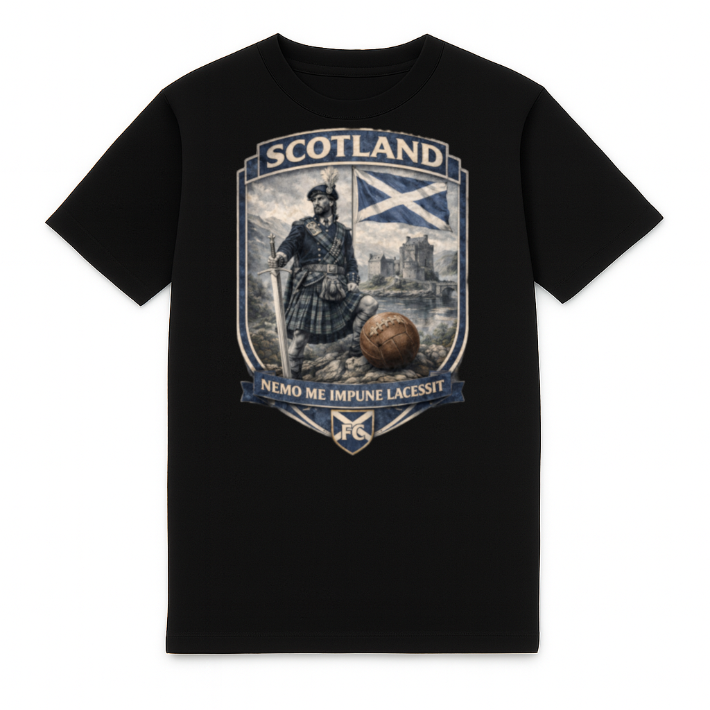 Elegante t-shirt heavy Scotland di FC ELEVEN per adulti. Questa t-shirt heavy è realizzata in cotone biologico pesante e offre una sensazione robusta e confortevole. Il retro della t-shirt presenta una stampa accattivante di uno scudo con un’immagine 3D di uno scozzese nelle Highlands scozzesi. La stampa è realizzata nei colori nazionali della Scozia, blu e bianco, e include il testo Nemo Me Impune Lacessit. Progettata appositamente per sostenere la nazionale scozzese.