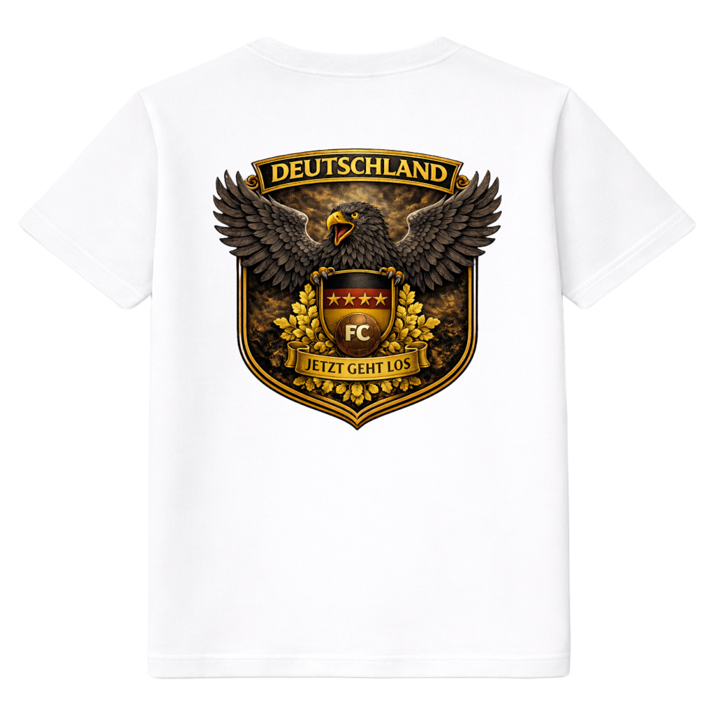 Questa T-shirt da calcio Germania FC ELEVEN per adulti è un vero colpo d’occhio per ogni appassionato di calcio. La T-shirt heavy è realizzata in cotone biologico pesante e risulta solida e confortevole. Sul retro è presente una stampa grafica colorata e di grande impatto della Germania, con al centro l’aquila dello stemma tedesco. La stampa è valorizzata dai testi DEUTSCHLAND e Jetzt Geht Los, che conferiscono alla maglietta un look deciso e sportivo.
