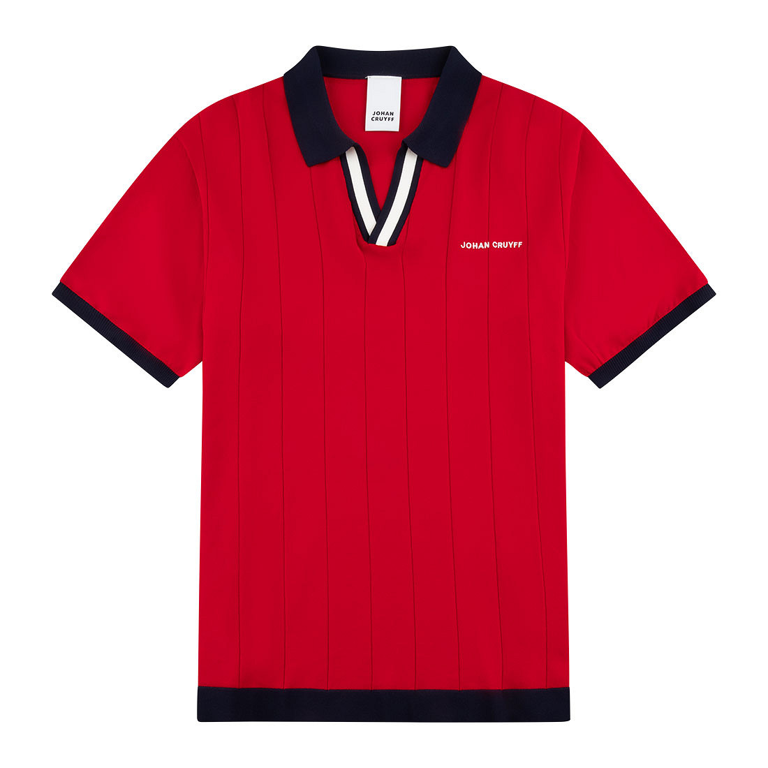 Questa polo sportiva retrò Johan Cruyff rossa è una scelta elegante per gli amanti dello stile sportivo classico. Presenta una vestibilità regolare confortevole, un colletto nero a costine e uno scollo a V nero e bianco. Il logo Johan Cruyff ricamato sul petto sinistro valorizza la qualità del prodotto.