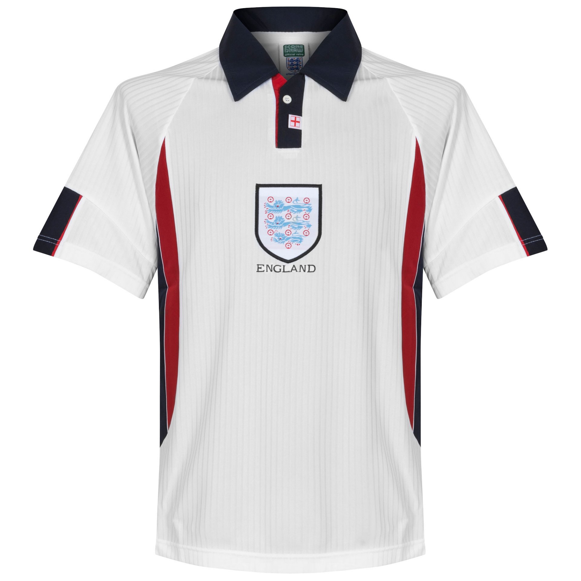 Rivivi le emozioni dei Mondiali 1998 con questa maglia retro ufficiale dell’Inghilterra firmata Score Draw. La maglia si ispira al modello casalingo indossato durante la FIFA World Cup 1998.