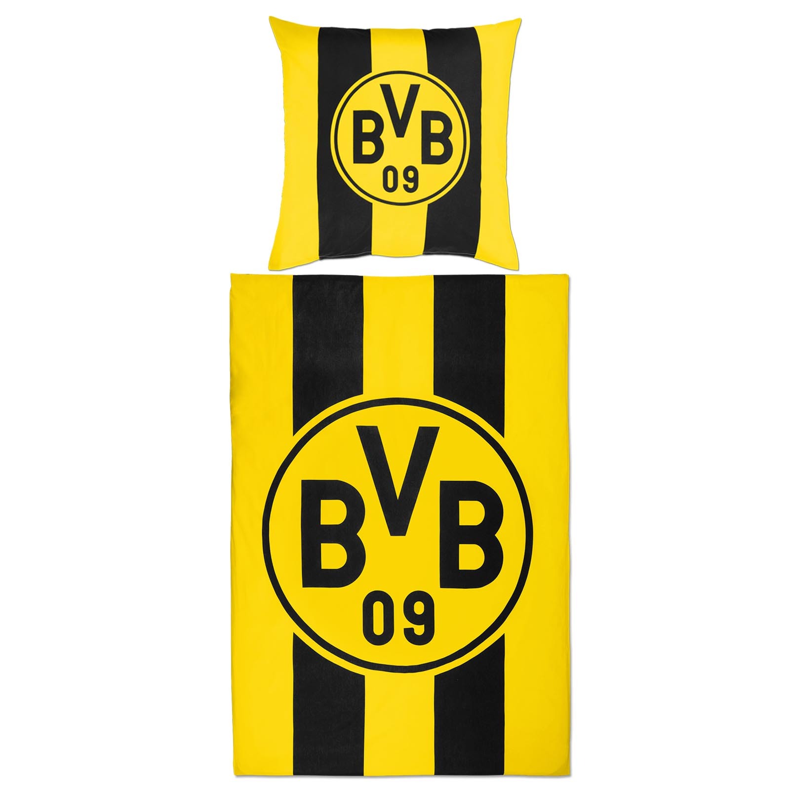 Questo è un set ufficiale di copripiumino e federa del Borussia Dortmund per un letto singolo. Il copripiumino e la federa sono realizzati nei colori del club e presentano il logo del Borussia Dortmund. Il copripiumino è nero con strisce gialle e mostra lo stemma del Borussia Dortmund. La federa misura 80 x 80 cm e il copripiumino misura 135 x 200 cm. Si tratta di un set adatto a un letto singolo. Perfetto per i veri tifosi del Borussia Dortmund! Il set viene consegnato in una speciale borsa del club tedesco.